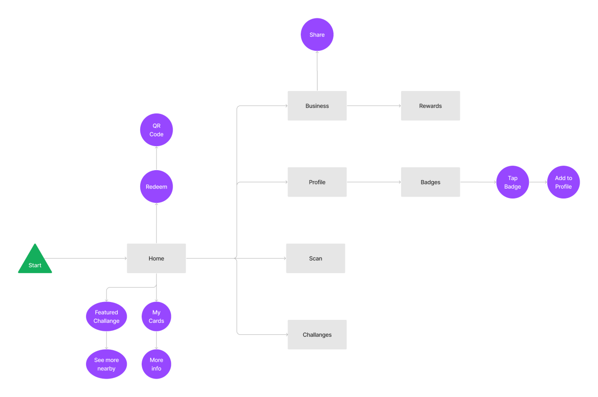Once the concept of our solution was decided on, our group was able to map out the flows & features of our platform to enable the most fluid experience possible for our users. This user flow provided the foundation for the preliminary wireframes of our app.